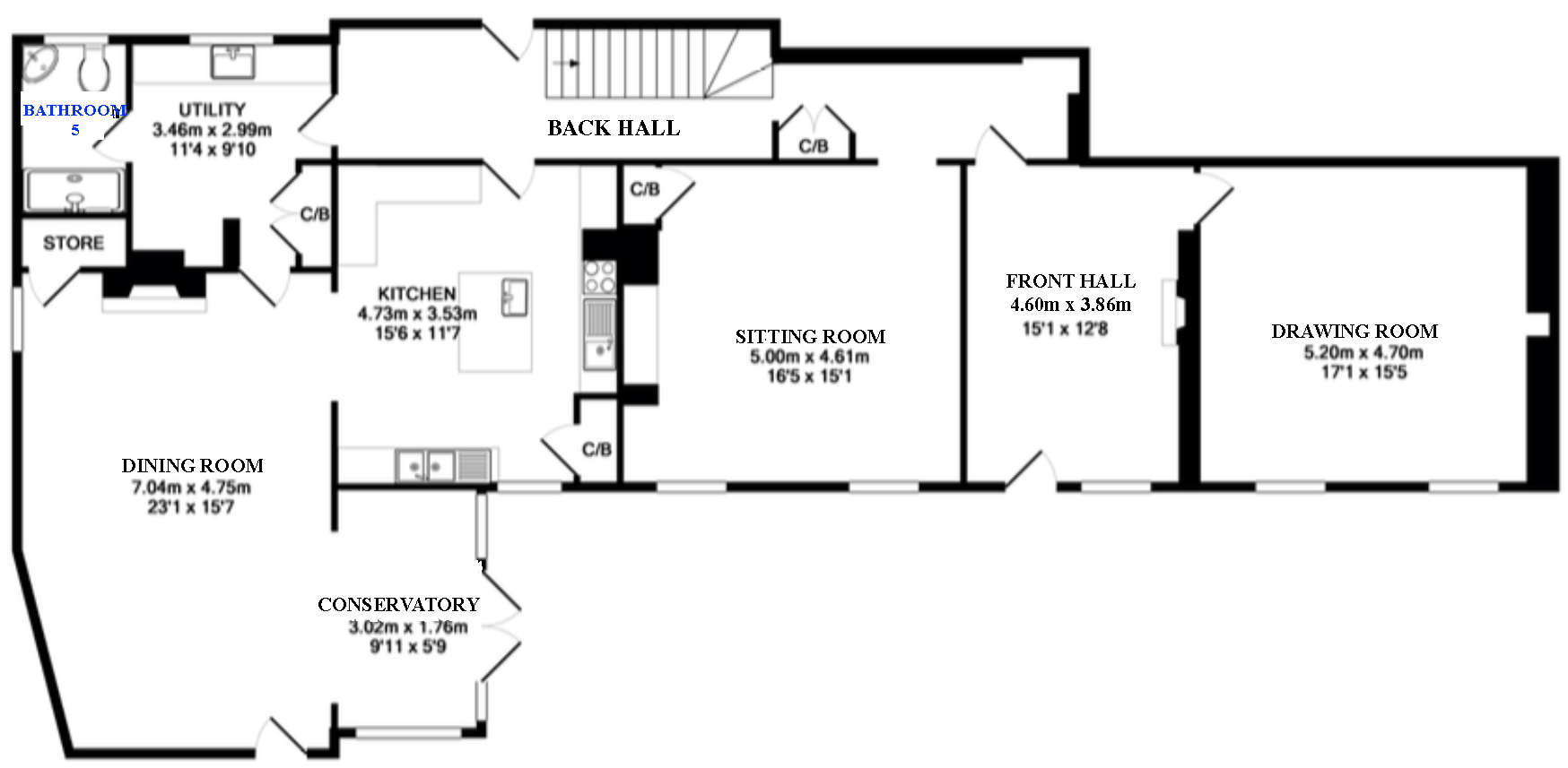 The ground floor offers a well-proportioned layout with distinct, thoughtfully designed rooms. The inviting reception rooms provide a perfect setting for both relaxation and socialising, with large windows that offer views of the garden and surrounding landscape. The kitchen is fully equipped and conveniently located adjacent to the dining area, making it ideal for preparing meals and enjoying family gatherings. The ground floor combines comfort and practicality for guests to enjoy a seamless stay.